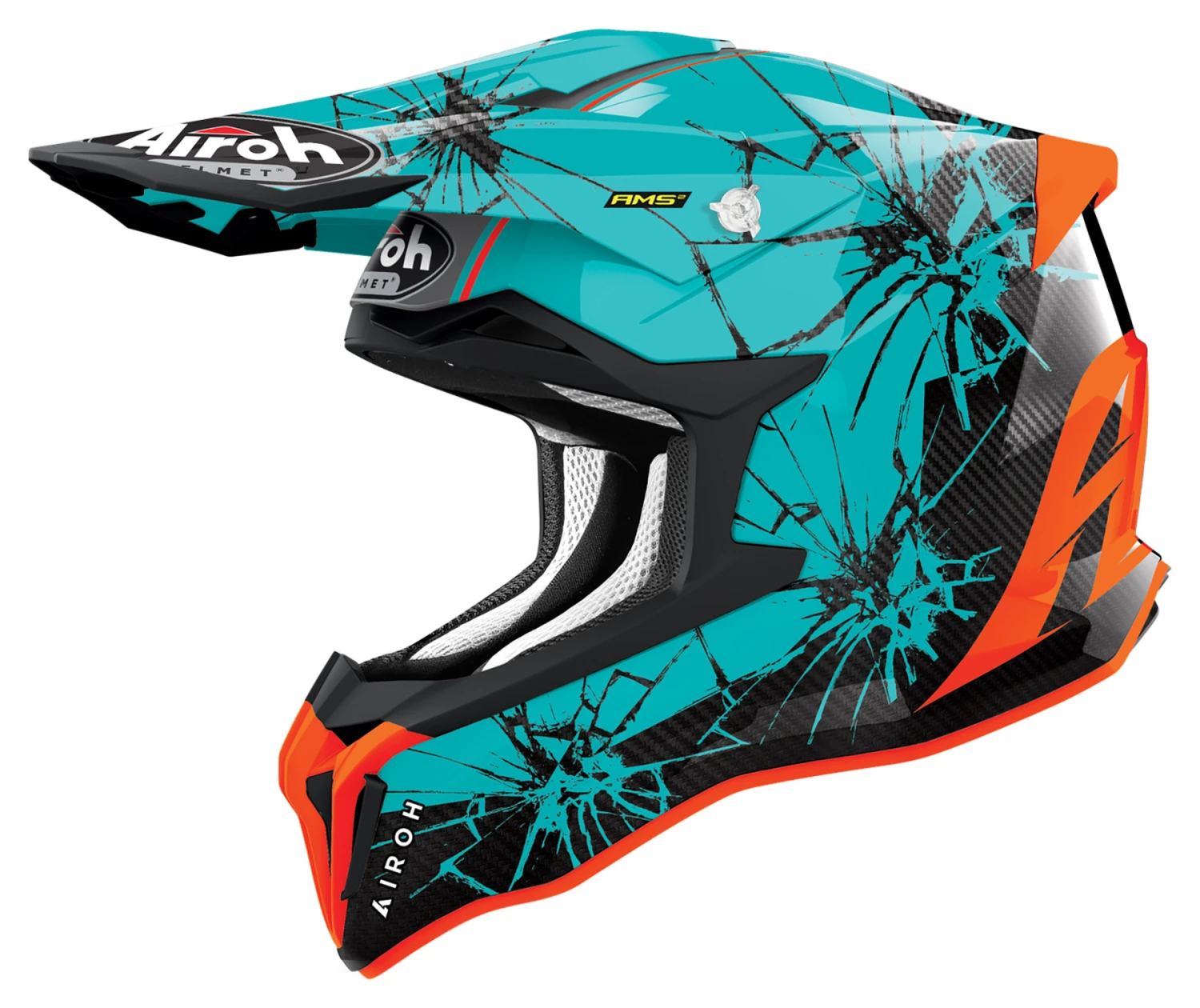 The track is calling, so pull on the Airoh *Strycker Crack Gloss* and jump on your bike! This Airoh motocross helmet provides the protection you need you when you go offroad. The rugged shell is made of HPC (High Performance Composite), a tried-and-tested material. Airoh uses three shells for different head sizes in its production, so you can be sure the helmet will fit your head perfectly. A removable, hypoallergenic and washable lining, and the AEFR (Airoh Emergency Fast Release) System are also included. In terms of safety, the *Strycker* makes no compromises. It’s equipped with the revolutionary AMSยฒ (Airoh Multiaction Safety System) system. In addition, the *Strycker Crack Gloss* has five vents and rear air flow extraction. So you can keep a cool head at all times.
