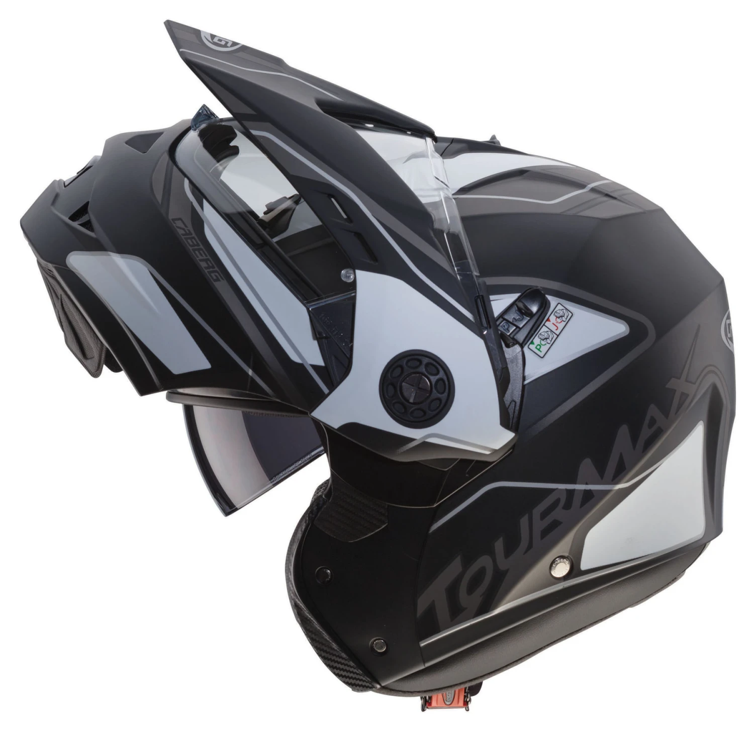 With the Tourmax Caberg brought the first enduro flip-up helmet on the market. Closed the model convinces in sunshine by the additional enduro shield. When you open the front flap and screen in one piece upwards. This allows the drive Tourmax as jet helmet.