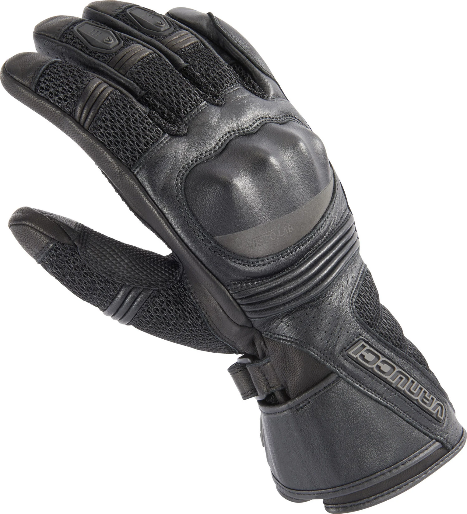 Summertime is touring time! And the perfect outfit for the most enjoyable biking months of the year should include these touring gloves from Vanucci. Summer Dry IV. They feature large mesh panels and perforations plus a mcTex climate membrane. The left glove has a visor wiper so that you’re prepared for those summer showers. Leather-covered knuckle armour and padding in key areas provide the necessary protection.